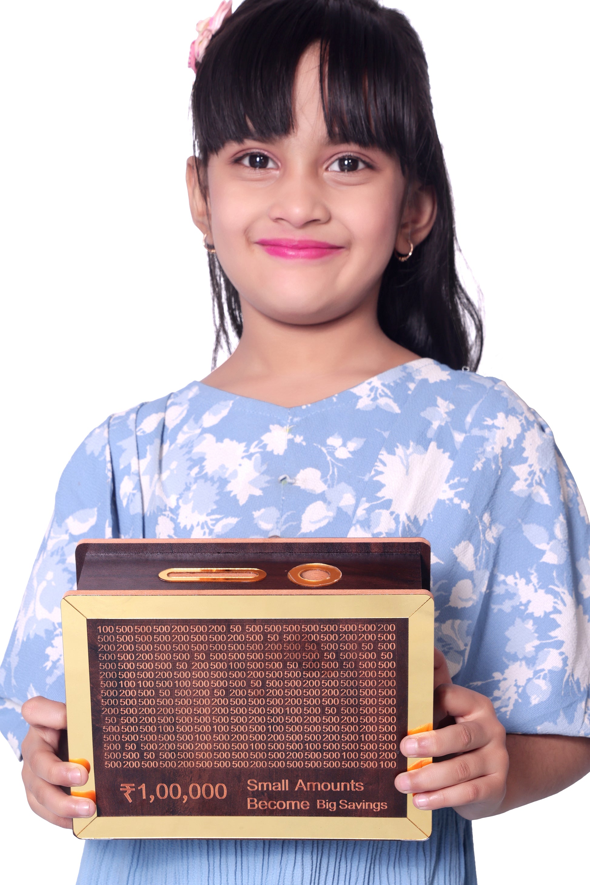 Take charge of your financial goals with this beautifully crafted wooden piggy bank – a fun, functional, and motivating way to save money for both kids and adults. Designed to hold up to ₹1,00,000/- or ₹10,000/-, it’s the perfect tool to build smart saving habits, whether you're teaching children about money or working toward your own financial milestones.